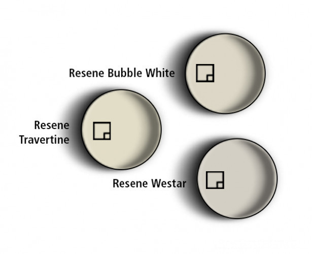 New-age neturals to try: Resene Travertine, Resene Bubble White and Resene Westar.
