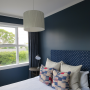 Resene Rhino is the perfect smoky dark blue for this bedroom designed by Furnishscene.