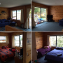 I feel very satisfied with how well we have accommodated our family of seven into a two-bedroom bach. For inside dining, the breakfast bar seats three and the table four, the living area seats all of us on two sofas and the sea urchin style poufs. The indoor/outdoor beanbags add extra seating when needed. In summer, we live on the deck mostly anyway. We sleep four kids in the bunkroom, one on the sofa bed, and us in the main bedroom. It all works perfectly!