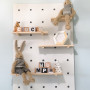Scott and Vanessa have added rental-friendly features to Connor's bedroom, such as this peg board shelving painted in Resene Half Pearl Lusta.
