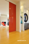 This door is a clever device, ‘flashing’ out of its cavity to close off the dining room and living area of an interior designed by Liz Kerby of Workspace Design. It’s actually painted in Resene Kamikaze.
