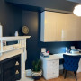 “As the staircase interferes with the ceiling I thought that making it a dark blue would take the eye off the ceiling as you enter the room and just make it a bit sexy. I love the effect it has as it’s so dramatically different to the rest of the house,” says Nikki and it works a treat.
