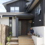 A new exterior look uses Resene Shadow Match from the Resene Woodsman exterior wood stains range on the timber along with Resene Triple White Pointer for the masonry walls and Resene Grey Friars for the trims.