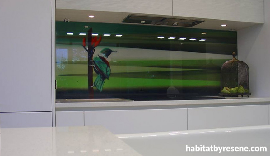 The kitchen features a bespoke splashback painted by Ann-Marie Drinkell from Artbarnz using various Resene testpots. Amanda Neill of Designworx talks us through the kitchen reno, in a clip from the Living Channel's How did you do that?