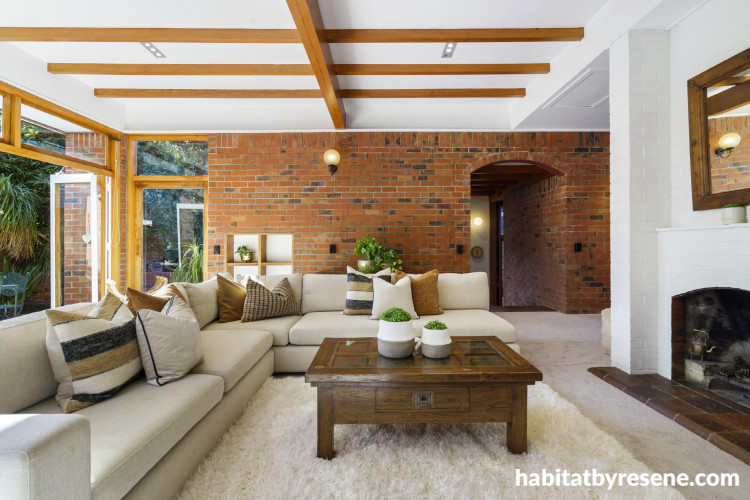The home has plenty of space for both relaxing after busy workdays and hosting gatherings on weekends. Ian is a business advisor, leadership coach and the owner of Glass Half Full. Georgia is a real estate agent and owner of Back to Basics, a designer and manufacturer of fabric and copper eco-friendly products. Walls, trims and ceilings, including the brickwork, all finished in Resene Rice Cake.