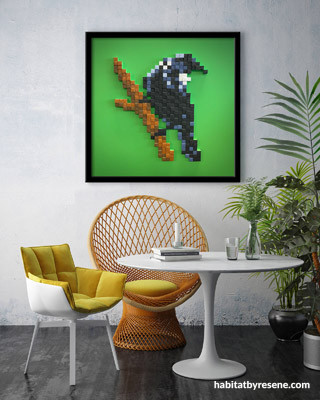 Two of Shane’s favourite are his ‘Space Invaders’ sculpture (also featured in habitat issue 38), for its bright shades, fun design and nostalgic aspect; and ‘Tui’, as this was the first 8Bit sculpture Shane designed where the entire process was his own, rather than referencing an existing image. A piece to be proud of.