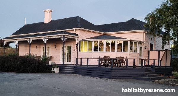 Wayne’s Oamaru home steps away from traditional villa colours. On the weatherboards he has used Resene Quarter Sakura, for the foundations Black Rock and for the trims Alabaster. “I am from Oamaru Veranda Lacework Co, and I have replaced the cast iron lacework with my fibreglass replicas to avoid rust on the white trim,” he says. “The veranda in this picture didn't exist until I replaced the lean-to kitchen with what you see. I built it to disguise the quirky kitchen style from the road and in my mind it looks like it was always meant to be.” What a great project!