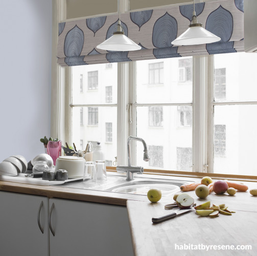 Roman shades are ideal for small bare windows needing a little love. Try this Verde fabric in colour Hydra with a woven leaf detail, from the Resene Curtain Collection. Pair with Resene Breathless (pictured), Resene Truffle or Resene Half Napa.