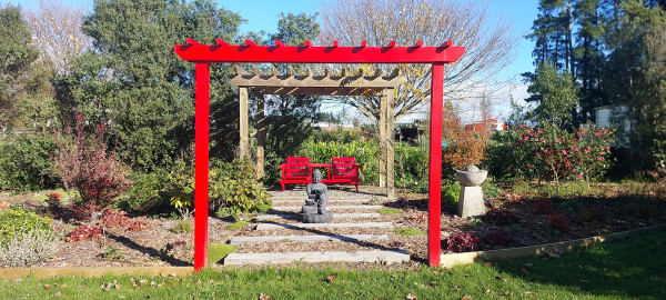 Mavis and her husband created this striking garden obelisk for their compact Stratford garden which was part of the Taranaki Fringe Festival. “We’d downsized, so I wanted something eye-catching,” says Mavis. Painted in Resene Adrenalin, this structure draws plenty of attention.