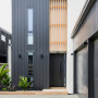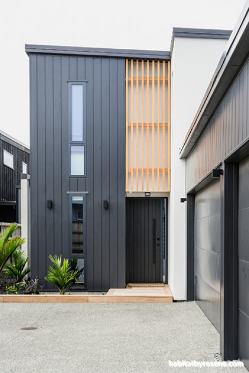 This home has great street appeal with its modern industrial look, from the vertical cedar in Wood-X Aspiring wood oil, available from Resene ColorShops, to the Resene Double Sea Fog cladding and soffits.