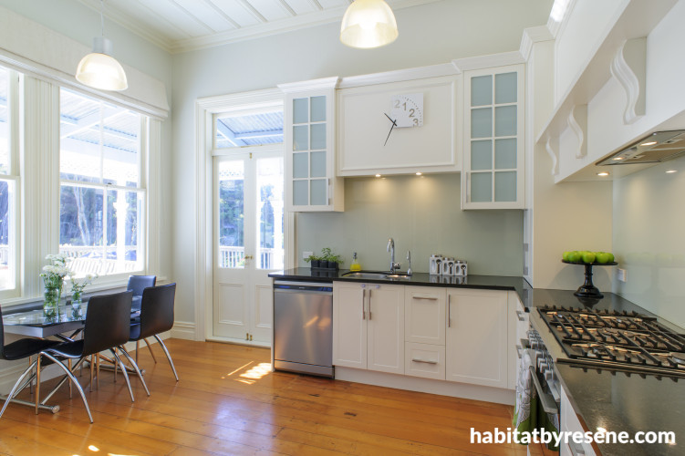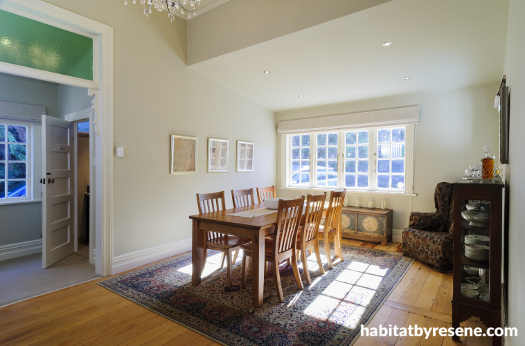 Soft aged colours all look like gentle reflections of the same thought process in this labour-of-love villa. Owners Nick and Nancy may be young but they’re old hands at the renovation process. And they not only choose what they want to do, but often strap on the work belt to do it themselves. Tradesmen were only employed on the ‘legal’ bits. Lofty ceilings, acres of woodwork, perfectly executed paintwork in a wide-ranging but elegant palette of Resene colours – it’s mostly down to their own hard work. They even relined the extra-high ceilings themselves.