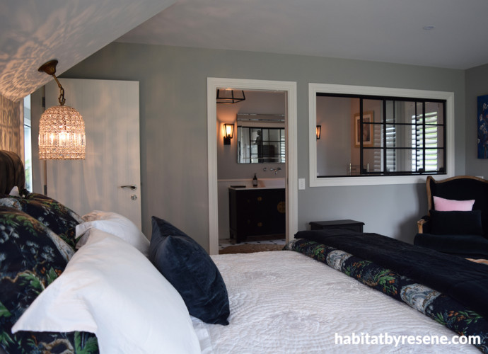 The retreat's most luxurious room is the Cherry Blossom Suite, with its own deck and opulent ensuite. The walls are painted in Resene Quarter Taupe Grey. The ceiling is painted in Resene Quarter Merino.