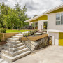 Revamped landscaping and a new colour scheme gave this traditional 1970s home a new lease on life. The vigorous olive green of Resene Grasshopper is offset by the subtle Resene Quarter Fossil, which gently blends both green and beige tones.