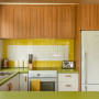 With retro wood cabinetry and a groovy green benchtop, the chosen paint colour needed to play bridesmaid to the kitchen design – support but not steal the thunder. Resene Half Spanish White is the perfect off-white choice – understated and classic.