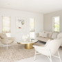 Shelley’s chic white living room, painted in Resene Alabaster on walls and ceiling and Resene Double Alabaster on trims. The touches of gold and modern neutral furniture give this space a timeless and elegant feel.