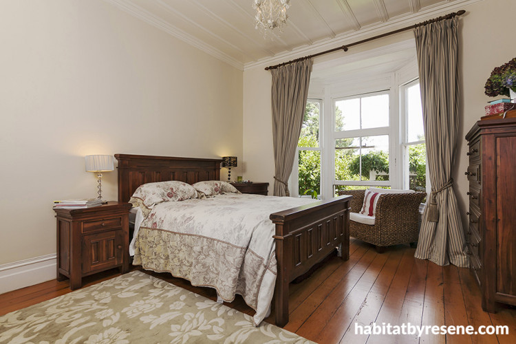 This time around, we chose colours that we knew would work well with the style and heritage of the house and which would complement the honey-coloured kauri floorboards. In keeping with its age, the house had originally had dark wood ceilings and trims so we felt it needed a fresh new start.