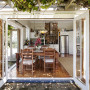 When the sun streams in the afternoon, the light dances off the bright red walls. In summer we throw the bi-fold doors open and a breeze wafts right through the house. Our custom-made bookshelves complete the ‘library’ effect.