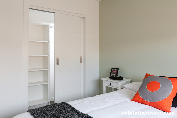 And the most popular colour? Resene Half Emerge by far (from The Range fashion colours fandeck) which is used on the walls of the main bedroom. “This would be the most liked colour according to all of the people who have been through the show home so far.”