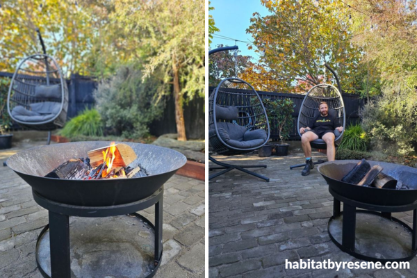 Outside, the fence is stained in Resene Woodsman Ebony with garden sleepers in Resene Woodsman Kwila.