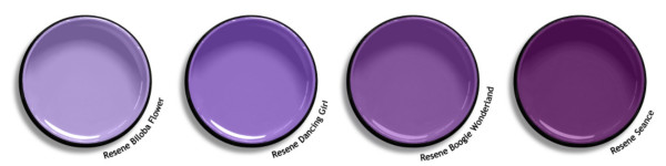 If you’re after purples that are a little more muted and easier on the eye, try Resene I Do, Siesta, Innuendo and Gun Powder: