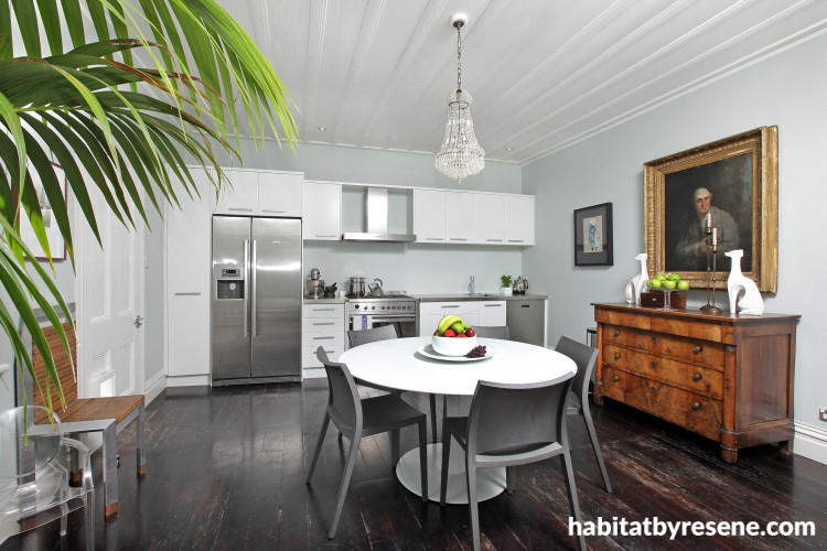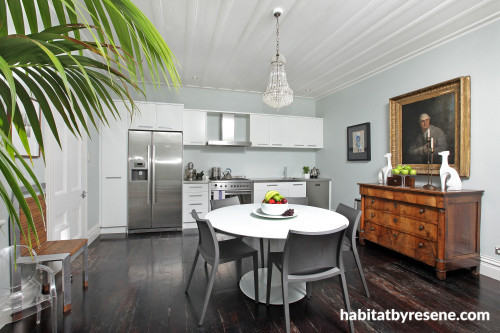 Inside this adorable dwelling, a very stylish and sophisticated colour scheme in blues, greens and greys has been cleverly implemented throughout. “Just once or twice people have walked in and commented that all the walls are the same colour,” Penny states with an expression of extreme bafflement.