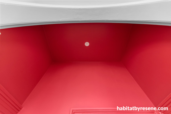 The burst of Resene Pohutukawa is a hidden gem within the home.