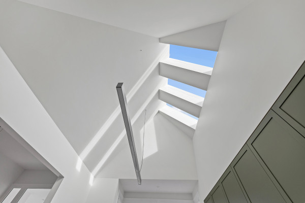 New expansive skylights let the natural light pour in highlighting the home’s detailing and softness of Resene Alabaster and Resene Half Merino.