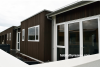 We love all of our home especially the lounge, with its large windows, high pitched ceiling and all day sun. We’re also happy with our striped couches and black leather swivel chairs. And we love the contrast of the exterior Resene Rice Cake plaster finish with the vertical cedar boards stained in Resene Treehouse.