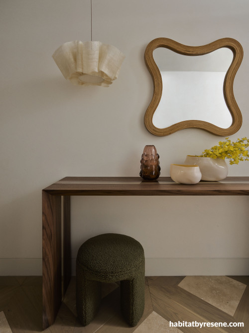 The entryway welcomes guests, painted in Resene Double Rice Cake to harmonise with the rest of the home.