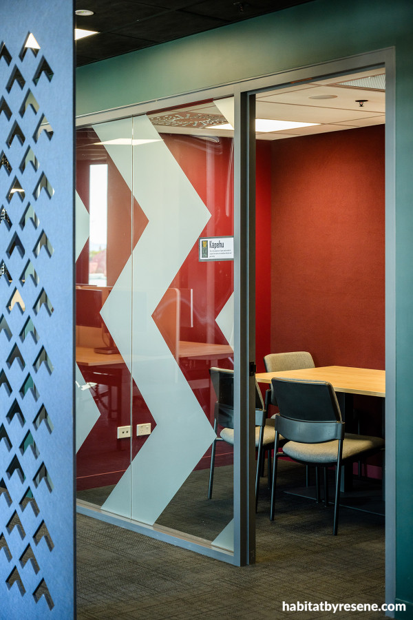 The top level, Te Wāhi o Nga Ringawera, is dedicated to staff spaces. Here, tones deepen to create focus and calm, with Resene Nite Life and Resene Racing Green in work areas, and bolder splashes of Resene Smoulder and Resene Noosa adding vibrancy to meeting and breakout spaces. It’s not just about aesthetics, the deeper hues make way for natural light and exterior views to shine, ensuring a work environment that’s rich in light and layered with meaning.