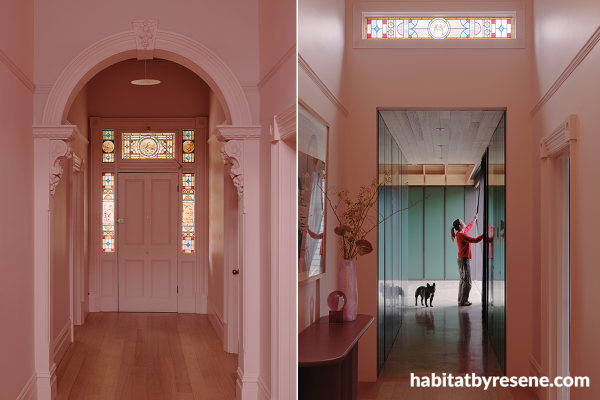 This project is finished in: Resene New York Pink, Red Oxide, Apple Blossom, Florentine Pink, Beryl Green, Despacito, Beethoven, Contour, Cashmere, Quarter Biscotti, Sakura, Tom Thumb and Tulip Tree. Photographer: Emilio Garcia.