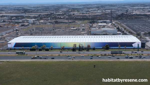 Refreshing and stimulating, this work transforms a large-scale built form into an opportunity for visual engagement. Where many large buildings and warehouses are constructed with little colour or character, this project demonstrates how, through a vibrant spectrum of complementary colours and a composition that creates a strong sense of movement, thoughtful design can bring energy and beauty to otherwise utilitarian surroundings. The result is a striking intervention that turns scale into an asset, delivering colour, vitality and everyday pleasure to the wider community.