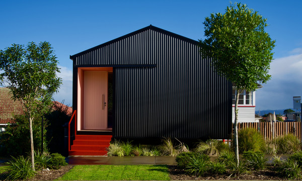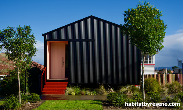 This project is finished in: Resene Black White, Natural White, Black, Broom, Resene Cemseal, Resene GP Metal Primer, Resene Aquaclear Satin, Resene Sureseal, Resene SpaceCote Flat Kitchen & Bathroom and Resene Woodsman Black. Photographer Strike Photography.