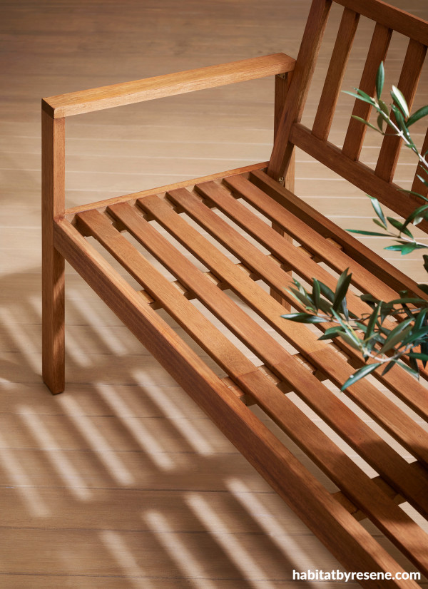 Natural-looking timber is a top exterior trend where Resene stains, colour washes and wood oil finishes help give an ‘untouched’ look while protecting these surfaces from the elements. Bench finished in Resene Timber and Furniture Gel in Resene Kwila.