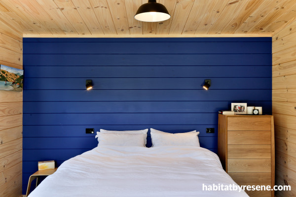 Accent wall painted in Resene Aviator and other walls and ceiling finished in Resene Aquaclear Satin. Build by Andrew La Grouw, Garry Miller and Michael Whyte. Image by Jamie Cobel.