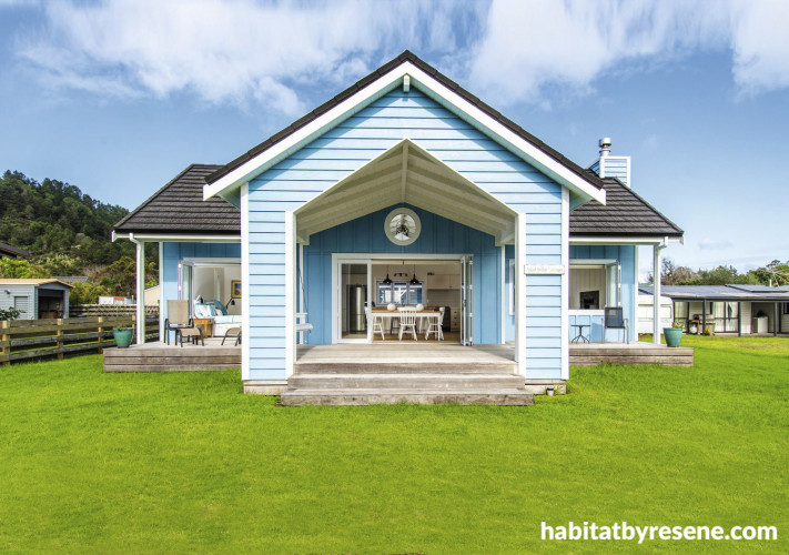 Heather and Rod’s bach in Whitianga is inspired by Heather’s childhood, where she lived in a Cape Cod-style home in Pennsylvania, USA. Cove Construction (www.coveconstruction.co.nz) built the A-line extension on an existing 1980s bach and the colour scheme features Resene French Pass. “Our home has some blatant American characteristics – so much so, we have had a few people walk up to our front porch and the first thing they ask is, ‘Are you American?’” says Rod. “We are fans of any beautiful colour. Don’t give us browns, blacks and beiges. Life is better with colour!”