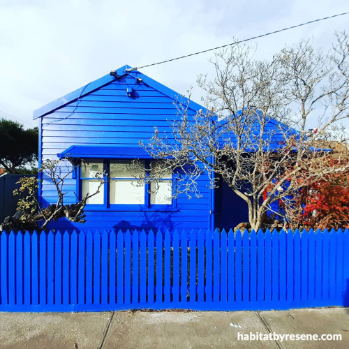 Leonie Bolton has never had a painting brief quite like this one. When Melbourne Precision Painters (www.melbourneprecisionpainters.com) received this commission from an artistic couple to paint their entire exterior in Resene Resolution Blue, she couldn’t help but smile. “Jobs like this don’t come up very often – this one was very special,” says Leonie. “Everyone who walked past while we were painting it commented. It’s very striking.” Leonie had painted the window frames on the house a few years ago in the same colour using Resene Enamacryl. She had joked that the homeowners should consider painting the entire house that colour – a few years later, they did just that and Leonie and her team chose Resene Sonyx 101 waterborne semi-gloss to achieve the eye-catching look.