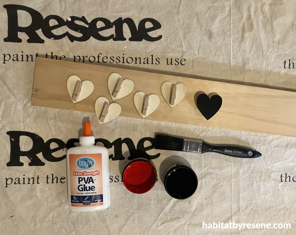 Step 3: Paint the heart pegs in Resene Poppy.