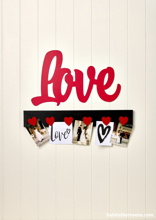 Looking for a unique and simple way to display your photos of your loved one? Try this DIY heart photo holder. Our image displays wedding photos, but this would work for any type of photos. You can also paint in your favourite colours to suit your home.