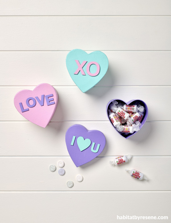 - Heart-shaped craft boxes (ours were from Spotlight and are 11cm wide and 11.5cm in height)