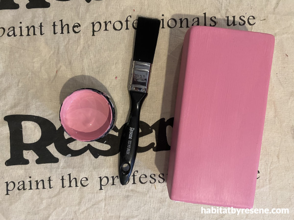 Step 3: Paint the final box and letters in Resene Ballerina.