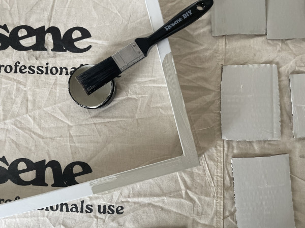Step 4: Paint the backing frame in one of the colours from your trio of testpots – we chose Resene Eighth Napa. Allow to dry.