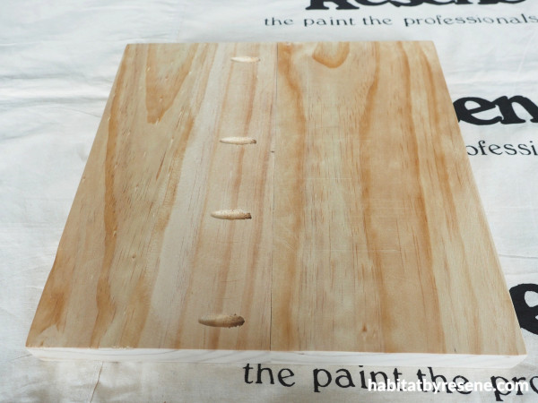 Step 5: Prime and then paint the two corner edges of the board where the top surface hasn’t been painted with Resene Tussock and Resene Hemlock.