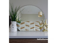 This freshly decorated mirror has a new lease of life featuring Resene Rice Cake and Resene Rose Gold metallic paint. To bring the look together, why not try painting some small decorative items in Resene Rose Gold metallic paint to flank the mirror?