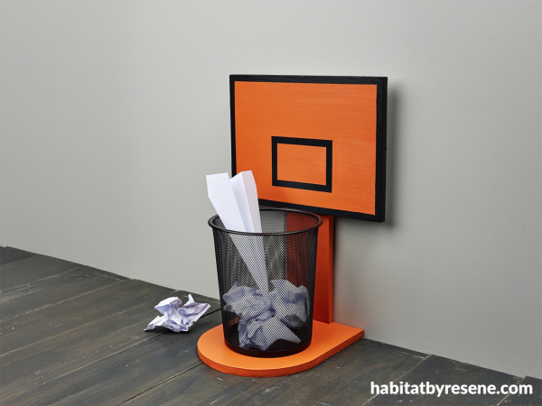 Make tidying up a slam dunk with this fun and functional DIY basketball hoop rubbish bin. Perfect for kids’ rooms or a playful home office, this clever project combines sporty style with everyday practicality. Featuring a bold backboard painted in Resene Tangerine and finished with crisp black court lines, it's a creative way to keep your space looking sharp while practising your aim. Click here for the steps to make your own!