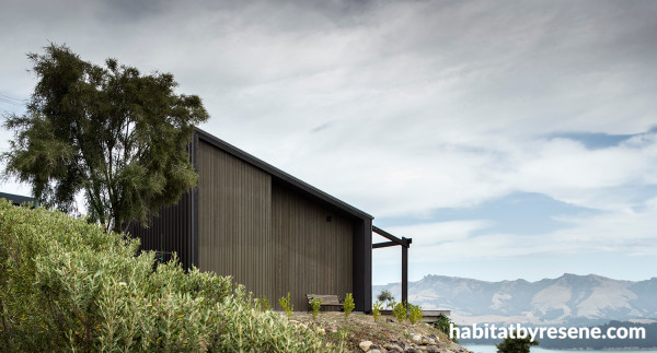 Resene Woodsman was a flawless choice for this Christchurch home against the striking harbour view. Resene wood stains, being inspired by nature themselves, sit beautifully within any natural environment, especially darker tones.