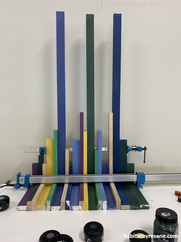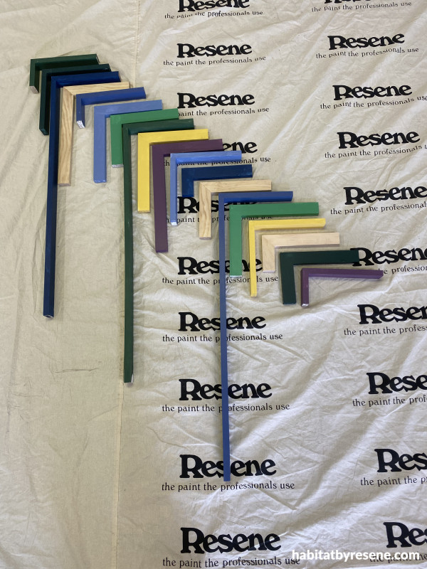 Your chosen Resene paint for painting or staining the wood offcuts. We used Resene Top Notch, Resene Panorama, Resene Rulebreaker, Resene Sunbeam, Resene Fandango, Resene Ocean Waves, Resene Away We Go and Resene Permanent GreenThis is a great project for also using up Resene paint from your recent projects or testpots.