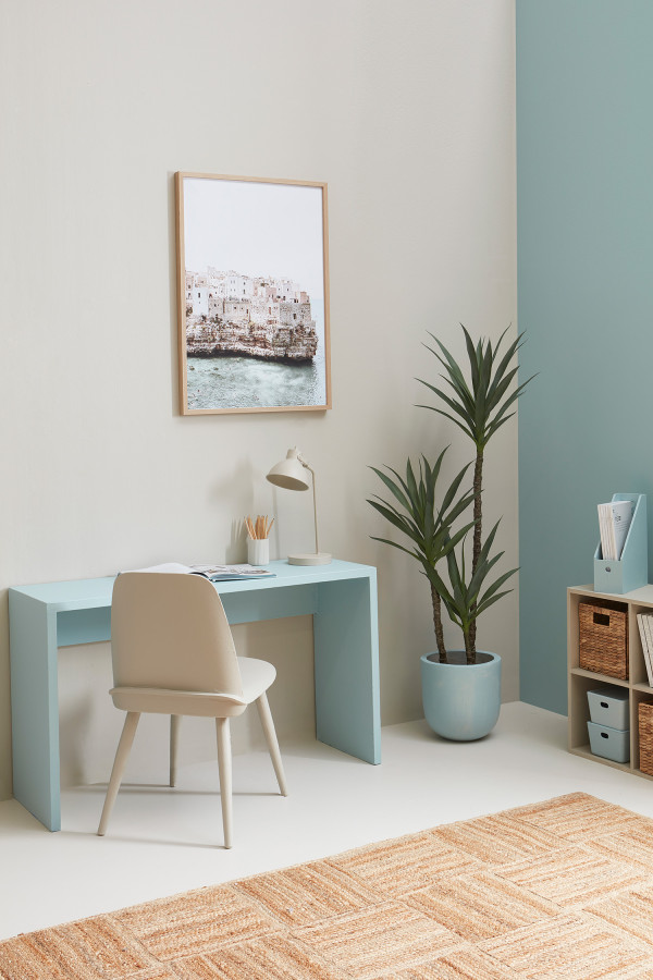This breezy, coastal-inspired office brings a sense of calm and peace, perfect for a stress-free, focus-friendly space. Sand and sea tones come together here with Resene Tea and Sorrento. Project by Vanessa Nouwens, image by Melanie Jenkins.