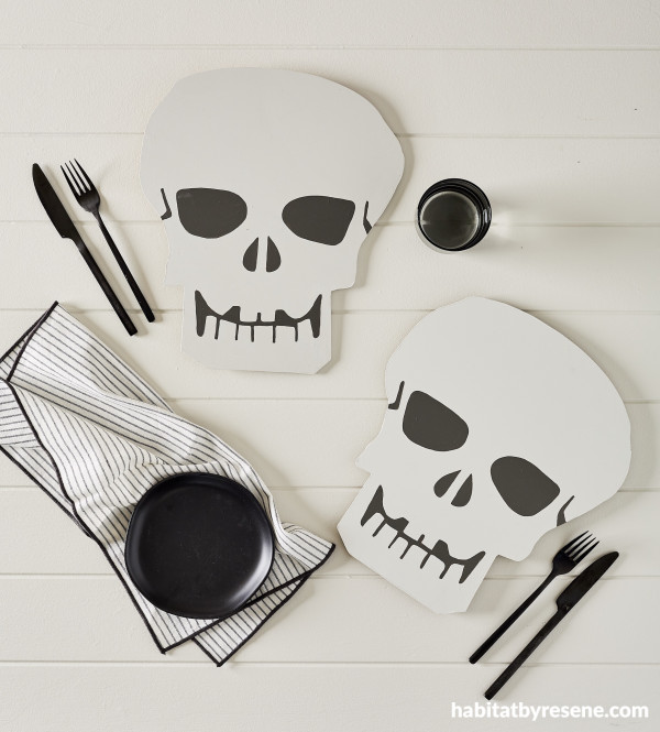 If you prefer a minimalist or neutral design at home, that doesn’t mean you have to miss out on all the fun festivities or creative projects. Just get your favourite neutral toned Resene testpots, instead of bold brights, and try one of our fun DIYs, like these skull placemats. These will add a great touch to your Halloween dinner party this month!