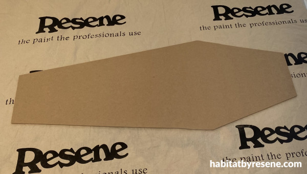 Step 1: Take your piece of MDF and draw a coffin shape onto the wood. Ours was 82cm long and 30cm wide.